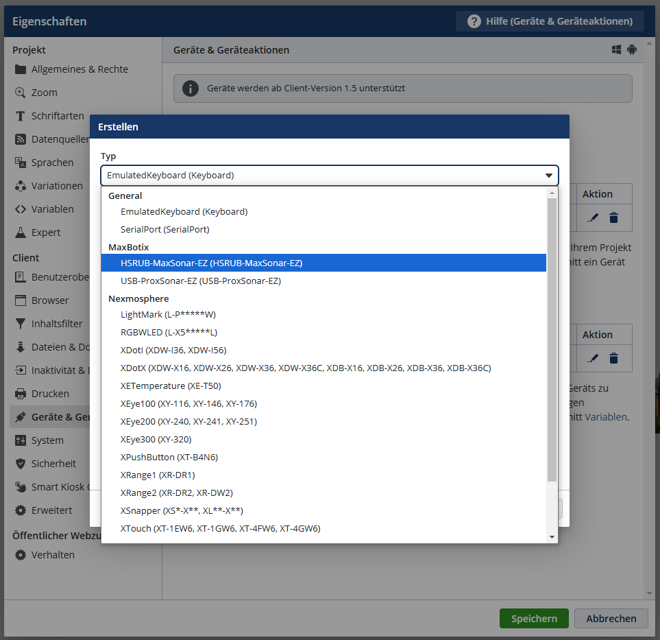 Das vorliegende Beispiel beschreibt die Einbindung des HSRUB-MaxSonar-EZ-Näherungssensors in ein Kioskprojekt. Der verwendete Abstandssensor ist einer von vielen verschiedenen Geräten und Sensoren die in SiteKiosk Online-Projekte integriert werden können.